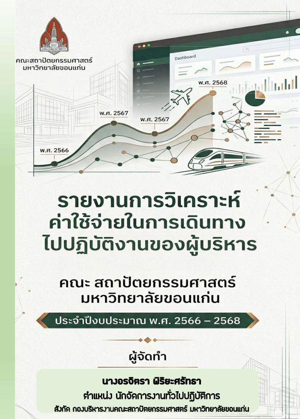 รายงานการวิเคราะห์ เรื่องค่าใช้จ่ายในการเดินทางไปปฏิบัติงานของผู้บริหาร คณะสถาปัตยกรรมศาสตร์ มหาวิทยาลัยขอนแก่น ประจำปีงบประมาณ พ.ศ. 2566 – 2568