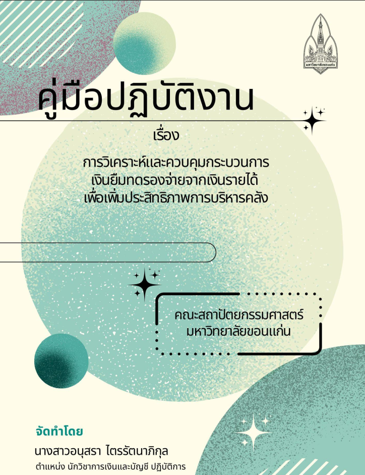 คู่มือปฏิบัติงาน : การวิเคราะห์และควบคุมกระบวนการเงินยืมทดรองจ่ายจากเงินรายได้เพื่อเพิ่มประสิทธิภาพการบริหารคลัง คณะสถาปัตยกรรมศาสตร์ มหาวิทยาลัยขอนแก่น