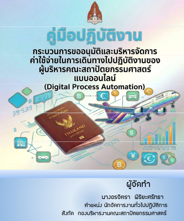 กระบวนการขออนุมัติและบริหารจัดการค่าใช้จ่ายในการเดินทางไปปฏิบัติงานของผู้บริหาร คณะสถาปัตยกรรมศาสตร์ มหาวิทยาลัยขอนแก่น แบบออนไลน์ (Digital Process Automation)