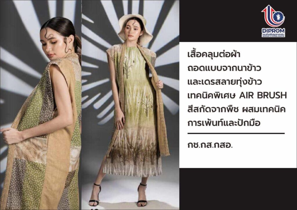 ไม่เพียงแค่นั้น ยังมีชุดที่ใช้วัสดุธรรมชาติอย่างเส้นใยกล้วย หรือ Banana Fiber Fabric รวมถึงงานออกแบบผ้าฝ้ายธรรมชาติ การเพ้นท์ลวดลายด้วยสีจากธรรมชาติ รวมถึงการปักด้วยมือ และงานเขียนลายจากสีธรรมชาติ ซึ่งสร้างความหลากหลายทางเนื้อผ้าและการตกแต่งอย่างลงตัว
