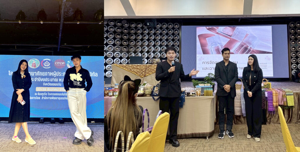 สาขาวิชาการออกแบบ คณะสถาปัตยกรรมศาสตร์ มหาวิทยาลัยขอนแก่น นำโดย อาจารย์ ดร.อรรคพล ล่าม่วง และอาจารย์มนต์ธิดา เลิศนิมานรดี เป็นวิทยากรถ่ายทอดองค์ความรู้เชิงปฏิบัติการในโครงการพัฒนาผู้ประกอบการสู่ยุค 4.0 ร่วมกับคุณจตุรพิธ พิมพ์แสง ผู้เชี่ยวชาญด้านการสร้างคอนเทนต์และการตลาดออนไลน์ เพื่อเสริมศักยภาพผู้ประกอบการ OTOP ให้สามารถปรับตัวและแข่งขันได้ในตลาดดิจิทัลอย่างเป็นระบบ  ซึ่งโครงการจัดโดยสำนักงานพัฒนาชุมชนจังหวัดขอนแก่น ระหว่างวันที่ 27–28 ธันวาคม 2568 ณ โรงแรมขอนแก่นโอเต็ล โดยแบ่งการอบรมเป็น 2 วัน