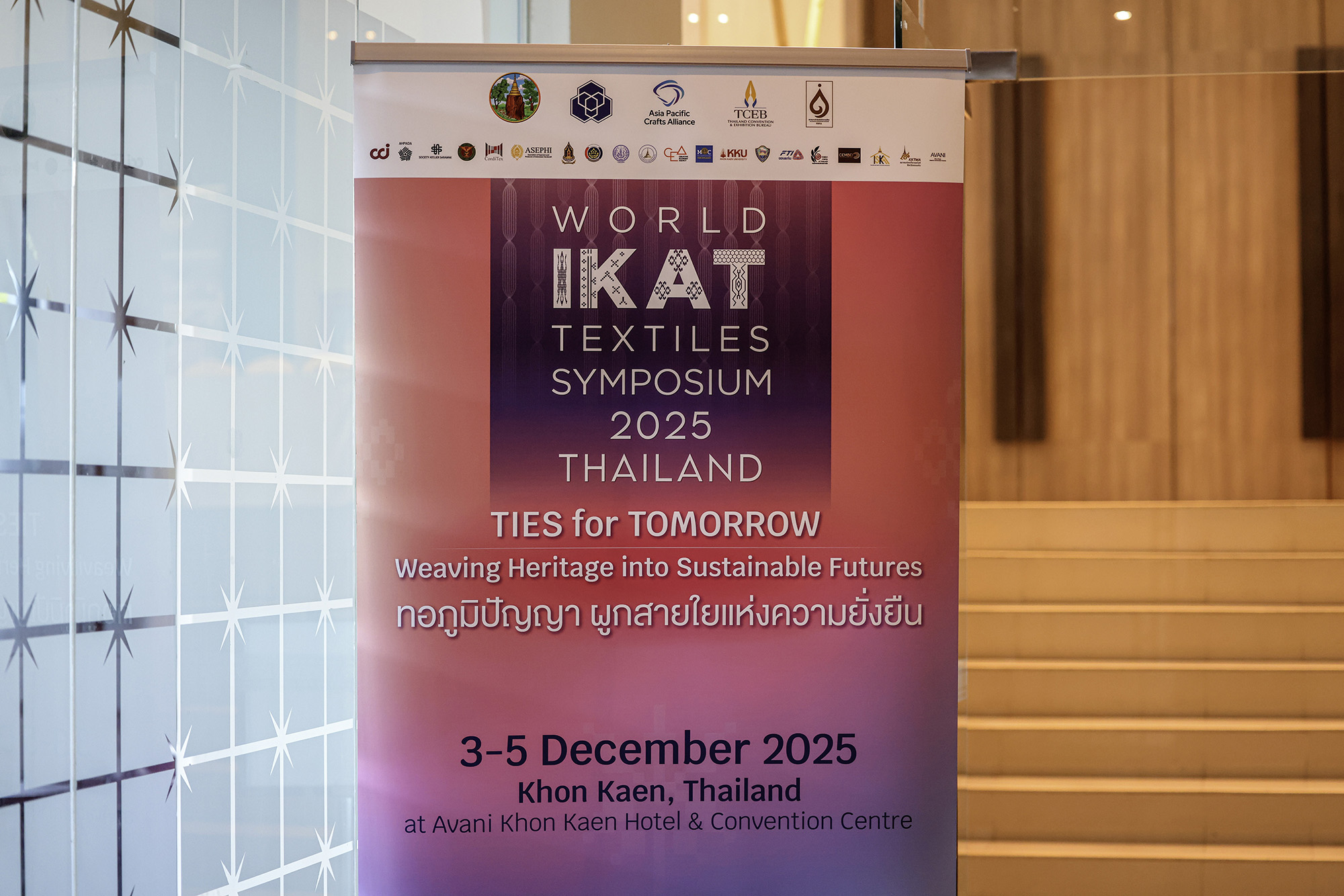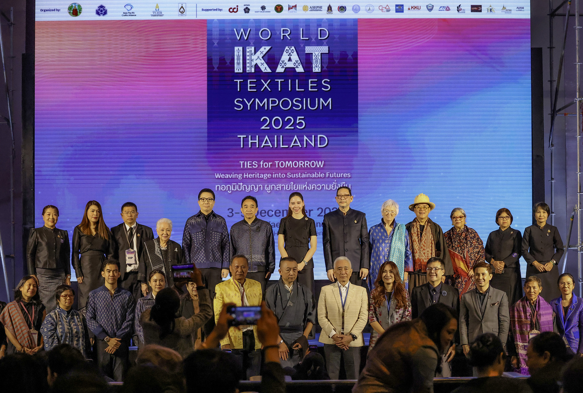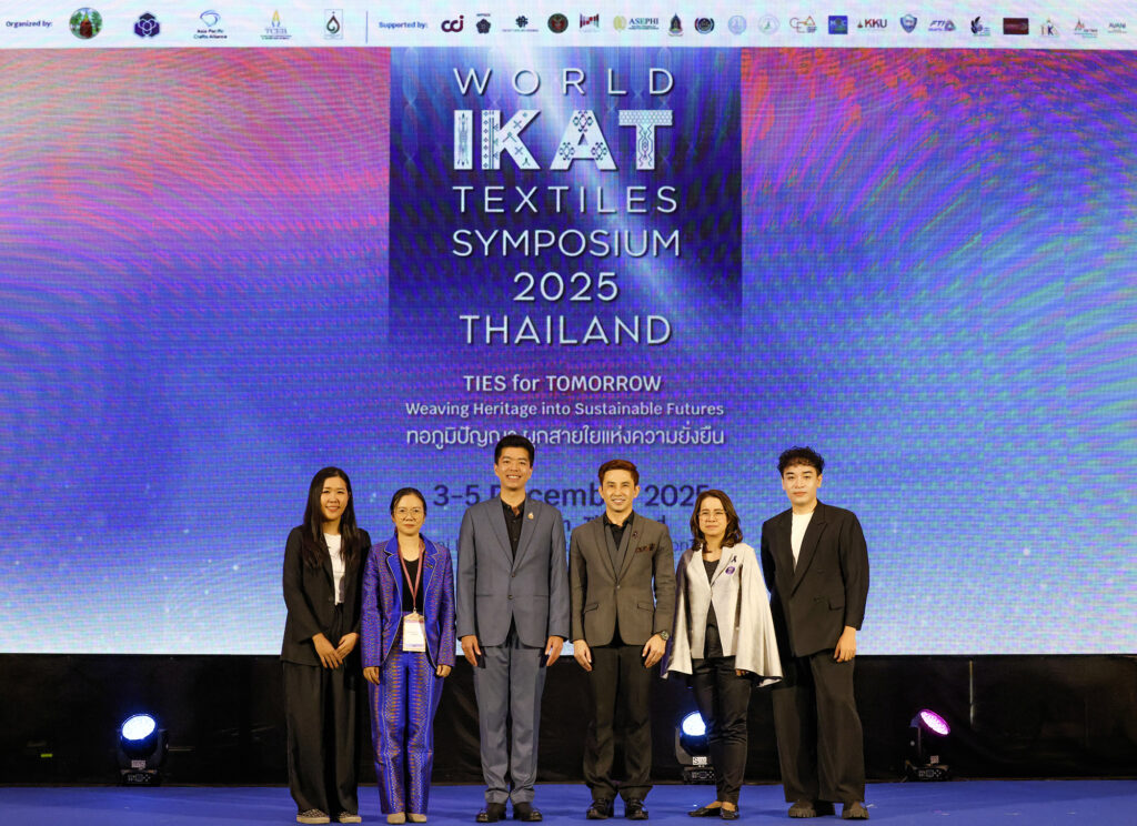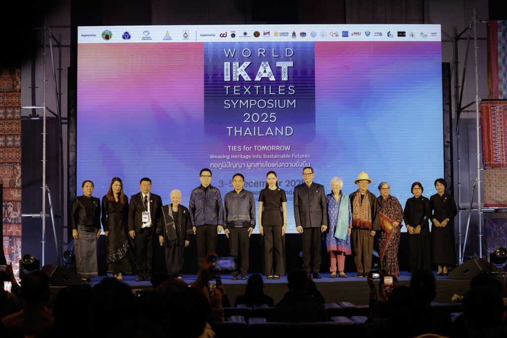 งาน World Ikat Textiles Symposium 2025 จัดขึ้น ณ โรงแรมอวานี ขอนแก่น โฮเทล แอนด์ คอนเวนชั่น เซ็นเตอร์ โดยมีนางสาวซาบีดา ไทยเศรษฐ์ รัฐมนตรีว่าการกระทรวงวัฒนธรรม เป็นประธานเปิดงาน พร้อมด้วยนายยุทธพร พิรุณสาร รองผู้ว่าราชการจังหวัดขอนแก่น หน่วยงานราชการ ภาคเอกชน และองค์การมหาชนเข้าร่วม ภายใต้แนวคิด “TIES for TOMORROW: Weaving Heritage into Sustainable Futures – ทอภูมิปัญญา ผูกสายใยแห่งความยั่งยืน” ซึ่งเป็นความร่วมมือระหว่างสมาคมการค้าส่งเสริมหัตถกรรมไทย สำนักงานส่งเสริมการจัดประชุมและนิทรรศการ และจังหวัดขอนแก่น โดยมีคณะสถาปัตยกรรมศาสตร์ มหาวิทยาลัยขอนแก่น ร่วมดำเนินงานในฐานะเจ้าภาพร่วมตั้งแต่เริ่มกระบวนการจัดงาน นำโดย รศ.ดร.กฤตภัทร ถาปาลบุตร คณบดี, ดร.ชนัษฎา จุลลัษเฐียร ผู้ช่วยคณบดีฝ่ายบริการวิชาการและศิลปวัฒนธรรม และ อ.ดร.อรรคพล ล่าม่วง ผู้ช่วยคณบดีฝ่ายพัฒนานักศึกษาและสื่อสารองค์กร