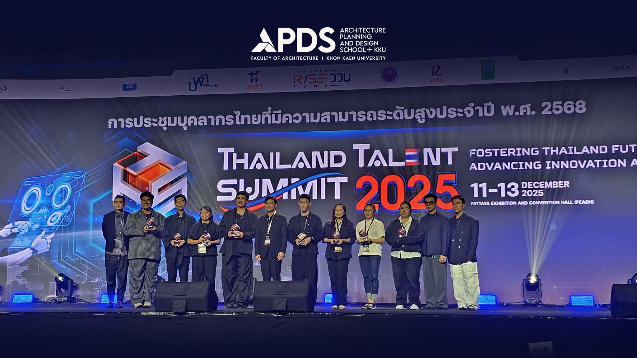 คณะสถาปัตยกรรมศาสตร์ (APDS KKU) ขอแสดงความยินดีกับศิษย์เก่าและศิษย์ปัจจุบัน ระดับบัณฑิตศึกษา สาขาวิชาการออกแบบ คณะสถาปัตยกรรมศาสตร์ มหาวิทยาลัยขอนแก่น ที่ได้รับรางวัลวิจัยและนวัตกรรมทางการออกแบบเครื่องแต่งกายและเครื่องประกอบการแต่งกายจากภูมิปัญญาผ้าไทย (Thai Textiles & Accessory Innovation: From Tradition to Trend Completion 2025) ภายใต้โครงการประชุมบุคลากรไทยที่มีความสามารถระดับสูง ประจำปี พ.ศ. ๒๕๖๘
