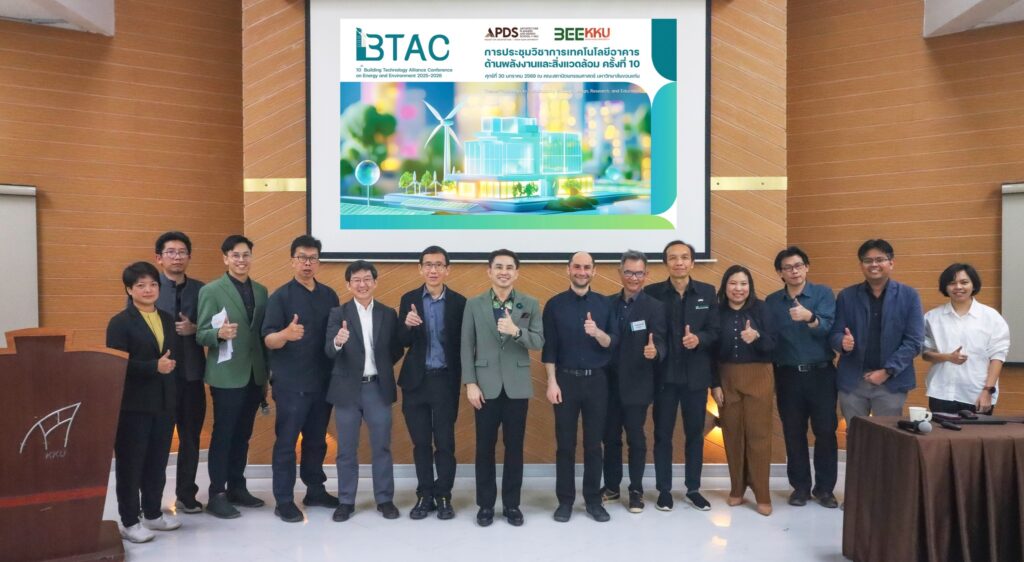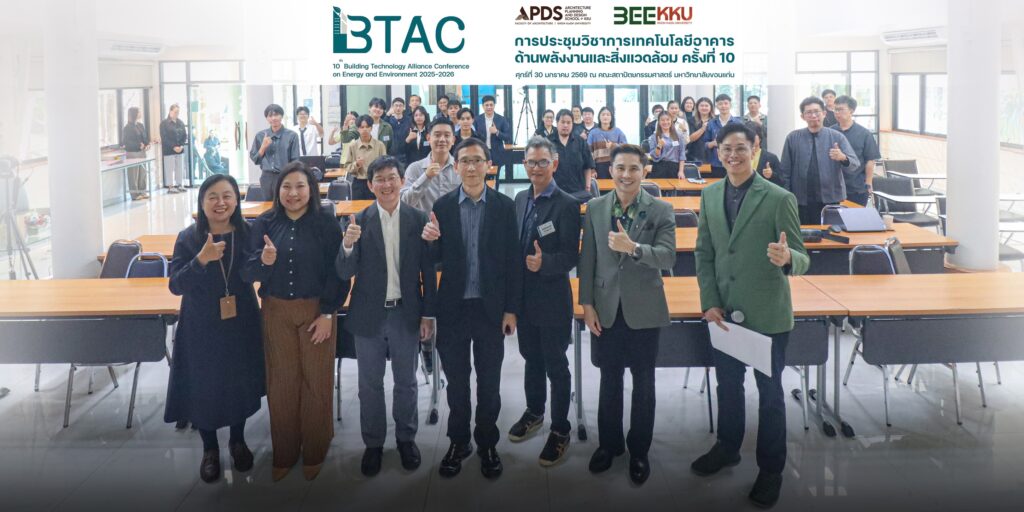 คณะสถาปัตยกรรมศาสตร์ มหาวิทยาลัยขอนแก่น จัดโครงการประชุมวิชาการเทคโนโลยีอาคารด้านพลังงานและสิ่งแวดล้อม ครั้งที่ 10 ประจำปี 2568″ (10 th Building Technology Alliance Conference on Energy and Environment 2025 ) Theme: Pathways to Sustainability through Design, Research, and Education โดยมี รองศาสตราจารย์ ดร.กฤตภัทร ถาปาลบุตร คณบดีคณะสถาปัตยกรรมศาสตร์คณบดีคณะสถาปัตยกรรมศาสตร์ มหาวิทยาลัยขอนแก่น เป็นประธานในงาน รองศาสตราจารย์ ดร.ยิ่งสวัสดิ์ ไชยะกุล ประธานจัดงานประชุมวิชาการ กล่าวรายงาน ในการประชุมวิชาการนี้มี คณาจารย์ นักวิชาการ และนักศึกษาระดับบัณฑิตศึกษาร่วมกิจกรรม จัดขึ้นเมื่อวันศุกร์ที่ 30 มกราคม 2569 ณ คณะสถาปัตยกรรมศาสตร์ มหาวิทยาลัยขอนแก่น ที่ผ่านมา