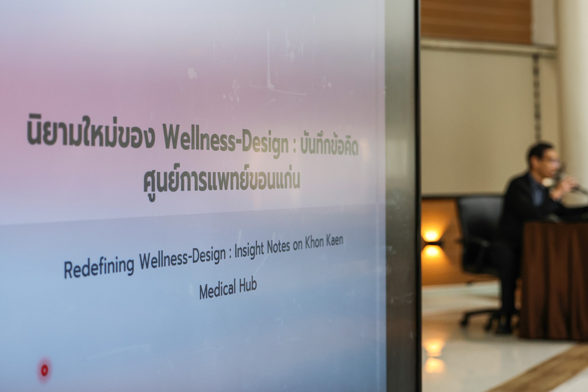 ซึ่งภายในงานประชุมได้รับเกียรติจากผู้ทรงคุณวุฒิผู้มีประสบการณ์ในวงการออกแบบและสถาปัตยกรรมมาเป็นองค์ปาฐก 2 ท่าน ได้แก่ คุณพงษ์ศิลป์ ทีปประสาน จากบริษัท Vice President of Architect 110 Co., Ltd. (บริษัท สถาปนิกหนึ่งร้อยสิบ จำกัด) บรรยายในหัวข้อ ” “Redefining Wellness-Design: Insight Notes on Khon Kaen Medical Hub”