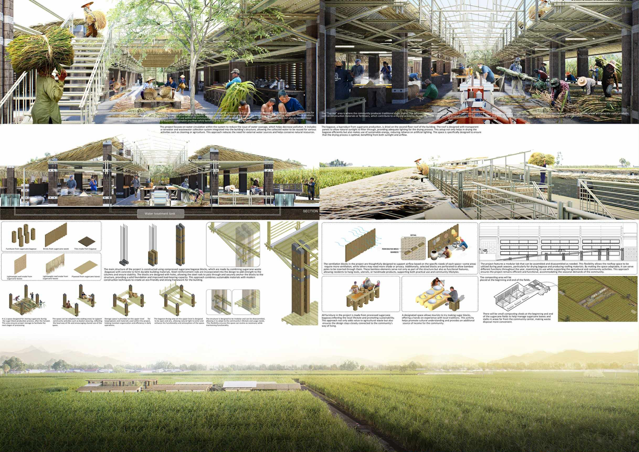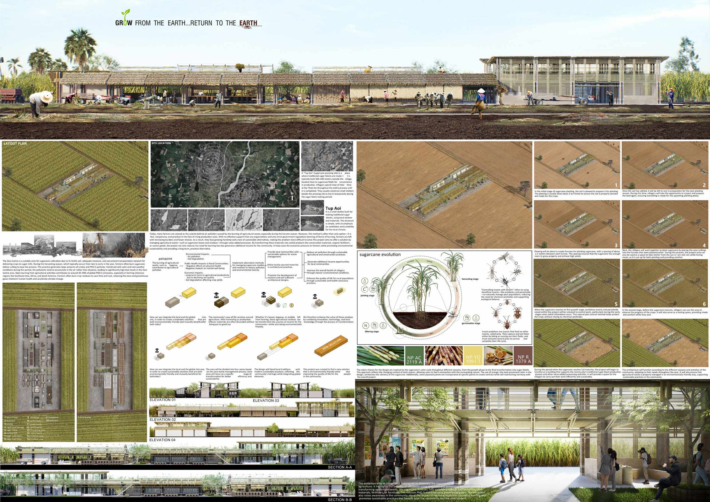 “Grow from the earth…. Return to the earth” นวัตกรรมเพื่อความยั่งยืน จากใจรักษ์โลก คือผลงานที่ได้รับรางวัลสะท้อนวิสัยทัศน์อันลึกซึ้งของสถาปนิกรุ่นใหม่ที่ให้ความสำคัญกับบริบทชุมชนและสิ่งแวดล้อม ชญานนท์ กล่าวว่า “โครงการนี้มุ่งสร้างความยั่งยืน ในวิถีชีวิตและอาชีพ พร้อมรักษาสิ่งแวดล้อมผ่านการออกแบบสถาปัตยกรรมจากวัสดุท้องถิ่น พร้อมการวางผังที่สอดคล้องกับกระบวนการผลิตอ้อยแบบครบวงจร โดยนำเศษวัสดุเกษตรมาหมุนเวียนใช้ประโยชน์ เพื่อลดการกำจัดเศษวัสดุที่ส่งผลกระทบต่อคุณภาพอากาศ และสร้างทางเลือกยั่งยืนให้โลกใบนี้”