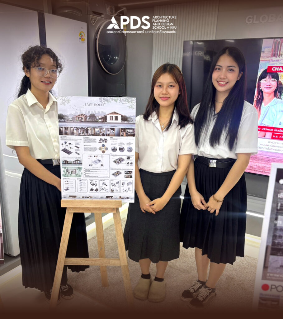 ทีมนักศึกษาสถาปัตย์ มข.ได้นำเสนอโครงการ “The Last House” ซึ่งมีแนวคิดหลักในการพัฒนาพื้นที่ที่ส่งเสริมปฏิสัมพันธ์ระหว่างผู้อยู่อาศัย เพื่อนบ้าน และชุมชน โดยเน้นการสร้างสภาพแวดล้อมที่เป็นมิตร ผ่านการแบ่งปันพื้นที่สีเขียว การคำนึงถึงความปลอดภัย และการส่งเสริมมิตรภาพในชุมชน อันเป็นการเสริมสร้างคุณภาพชีวิตและความยั่งยืนในการดำเนินชีวิตร่วมกัน โดยมี ผศ.เบญจวรรณ์ ทัศนลีลพร อาจารย์ที่ปรึกษาโครงการ